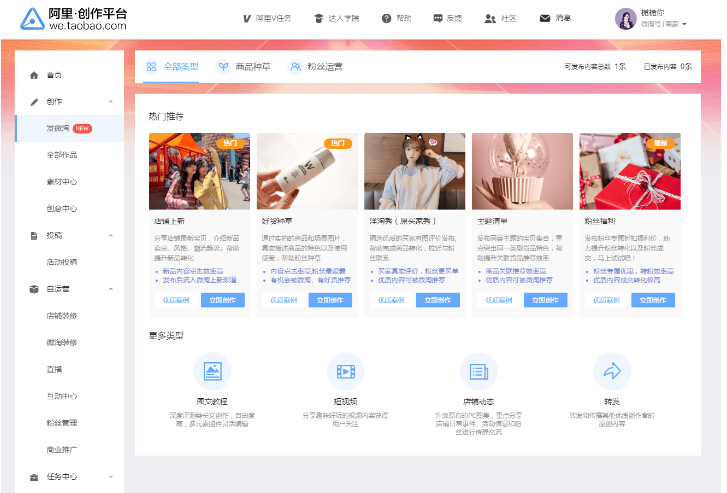 微淘:可以发布宝贝的上新以及好货种草,这个地方要坚持去发才会有效果的,因为微淘是会有等级限制和条数限制的,针对微淘进行内容营销,每天发布高质量的微淘,通过微淘发布店铺上新以及活动、宝贝清单等内容,保持店铺和粉丝之间的活跃,促进粉丝的下单和产品曝光;